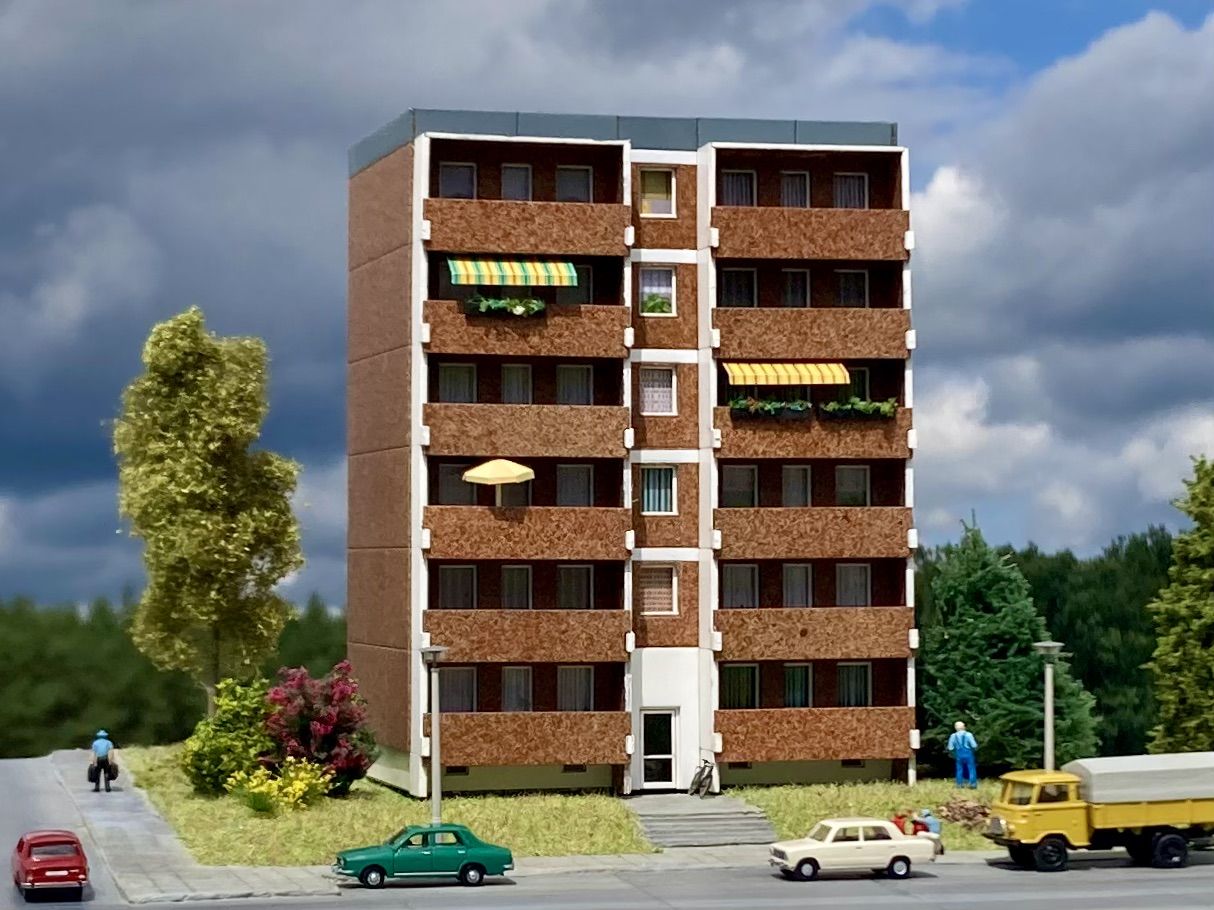 Ein Wohngebäude von industrieller Fertigungsqualität und einfacher Handhabung. Vorbild für dieses TT-Modell ist der berühmte Plattenbau der Wohnungsbauserie 70, kurz WBS 70 genannt. Hunderttausende, ja Millionen, wenn man alle Varianten zählt, dieser Wohneinheiten sind innerhalb von nur fünfzehn Jahren in der damaligen DDR errichtet worden.